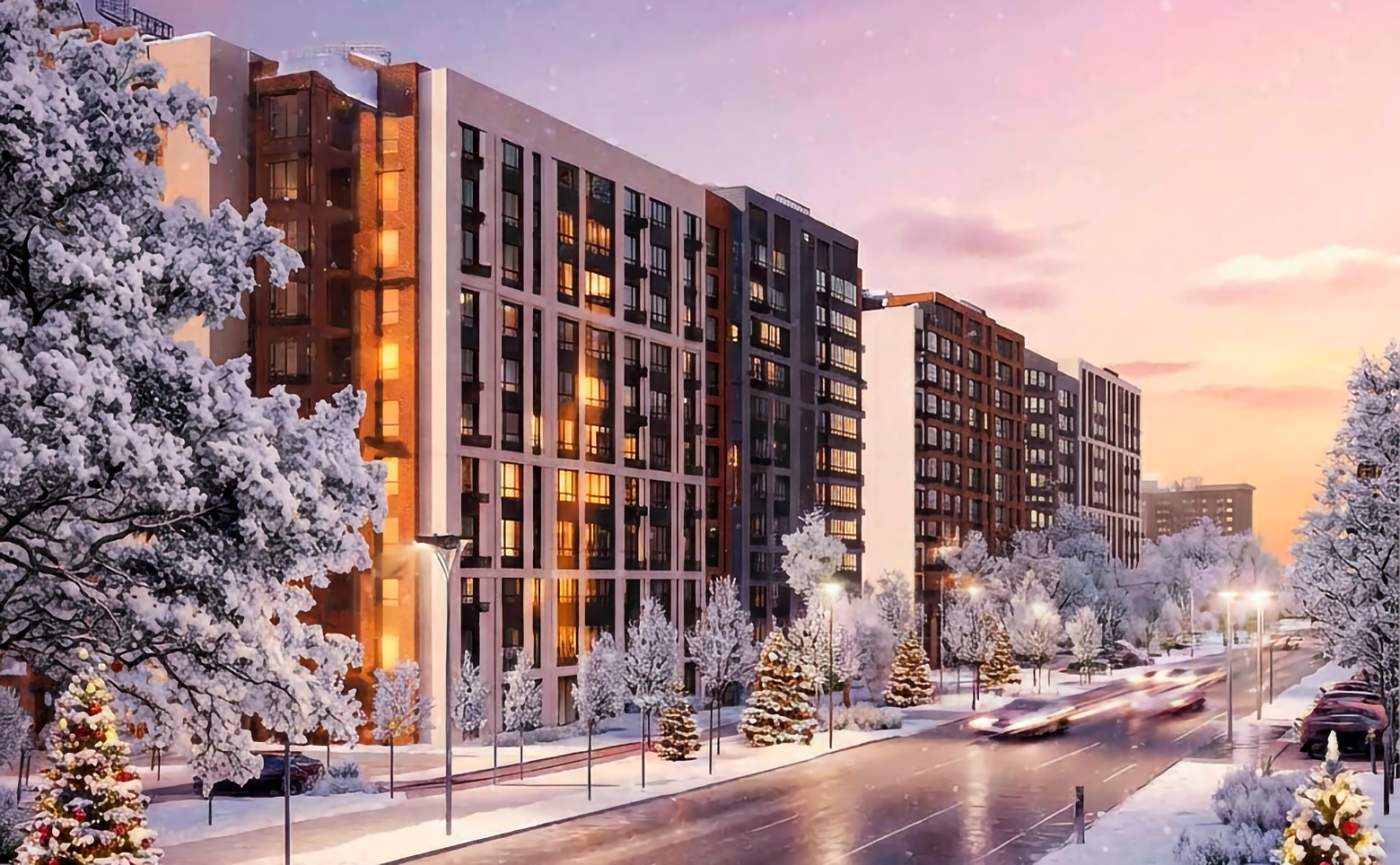 Жилой комплекс представлен как комплексная застройка монолитными домами переменной этажности: от 9 до 22 этажей. Дома отличает выразительная, динамическая пластика фасадов со смещением элементов отделки, сочетание контрастных тонов и большое количество остекления. В дизайнерских входных группах предусмотрены зона ожидания, санузел, лапомойки и места для хранения колясок.