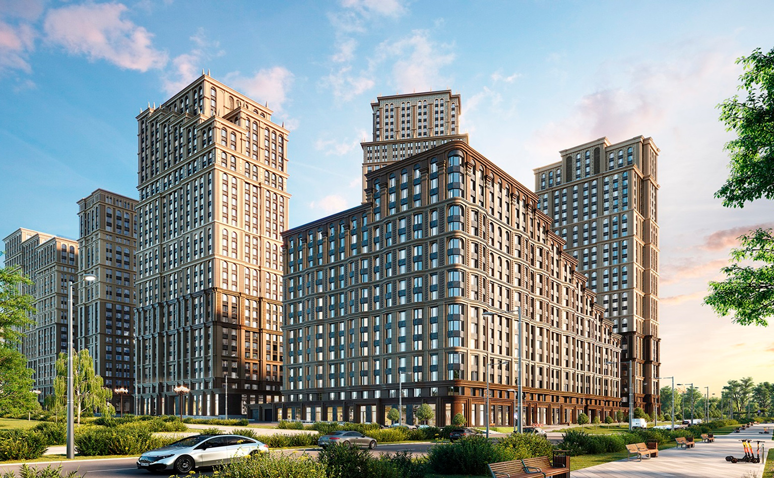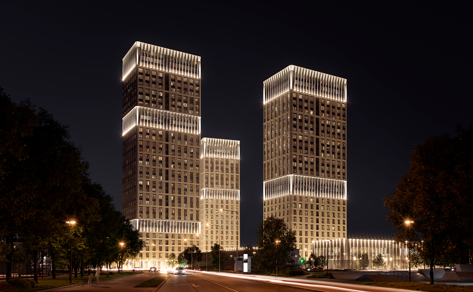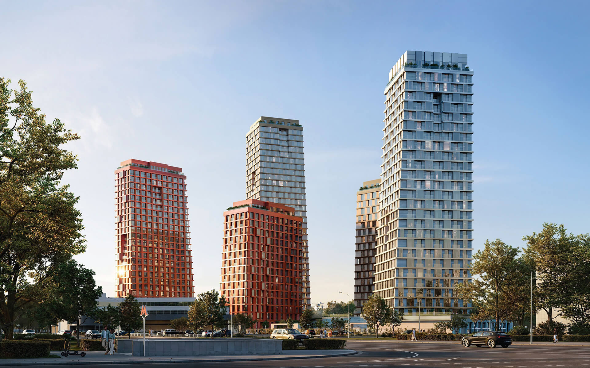Жилой комплекс бизнес-класса состоит из домов переменной этажности от 9 до 39 уровней и занимает участок площадью 3 га. Здания построены по монолитной технологии с облицовкой фасадов комбинированными материалами. Входные группы выполнены в формате гранд-лобби с дизайнерской отделкой, колясочными, кофепойнтами, лапомойками и лаунж-пространством. Предусмотрены пассажирские и грузовые лифты.