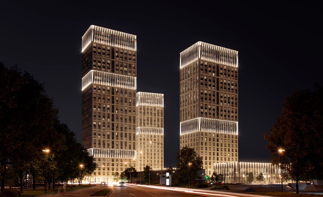 Жилой комплекс представлен 3 корпусами разной высоты от 24 до 33 этажей, что формирует выразительный силуэт застройки. Архитектурная концепция проекта разработана московским бюро WALL. Здания имеют увеличенную площадь остекления, фасады оформлены объемной бетонной плиткой с живой фактурой и воздушными алюминиевыми ламелями.