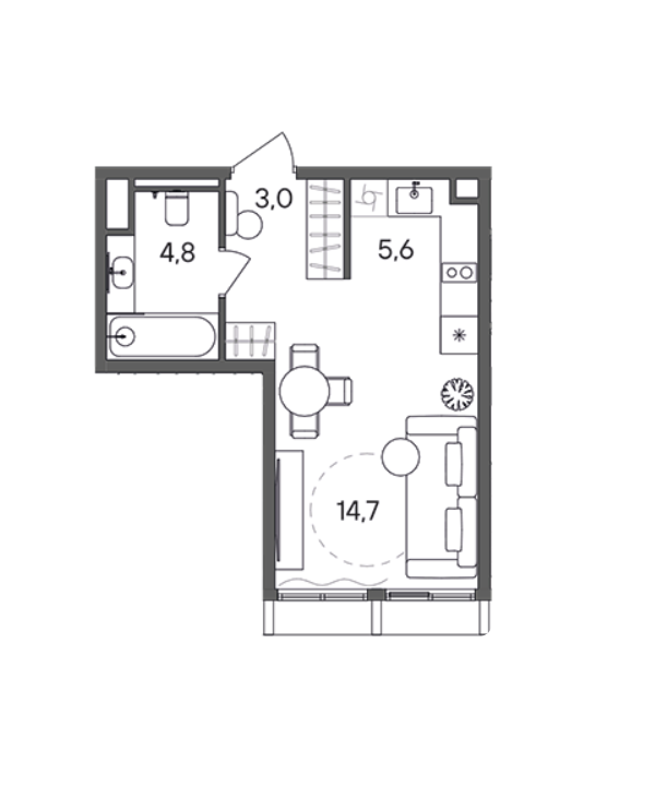 Площадь от 28.1 м2